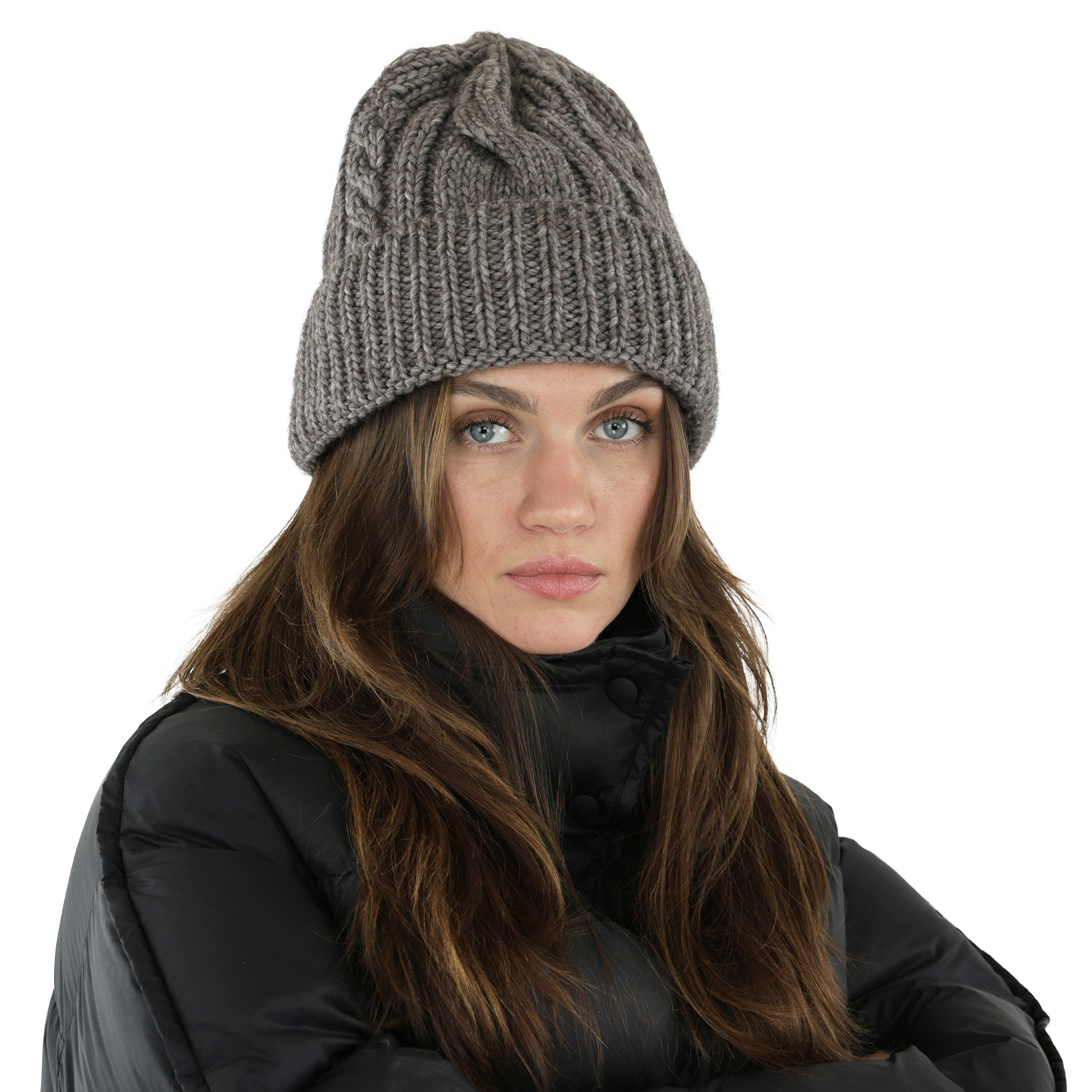 Muts - Gårda Bormio Cable Knit Wool Mix Beanie (grijs/beige)